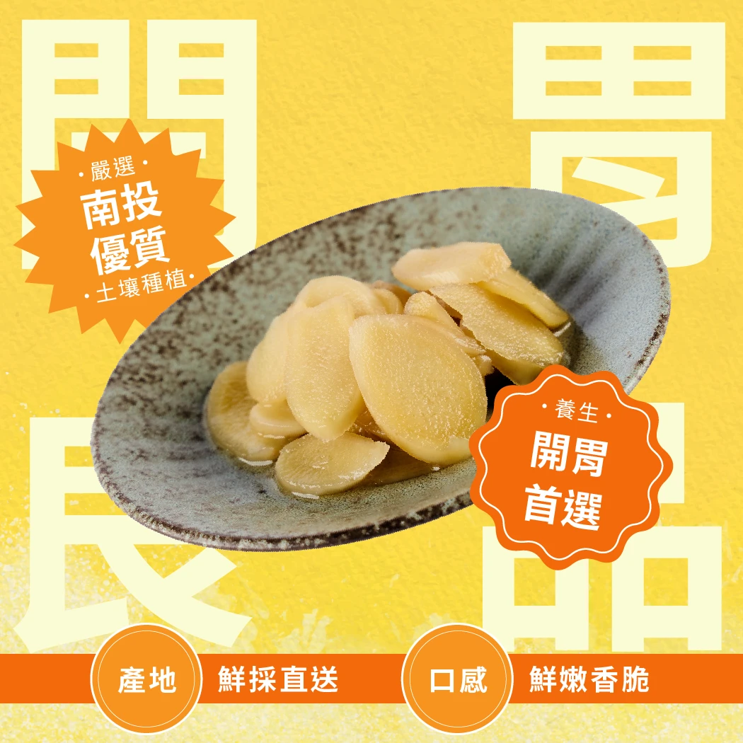 冰涼爽口的鮮嫩薑,經過醃製後,使薑本身的味道帶點酸甜的滋味,不論單吃或配餐都十分適合! 真空小包裝,一餐開一包剛剛好~